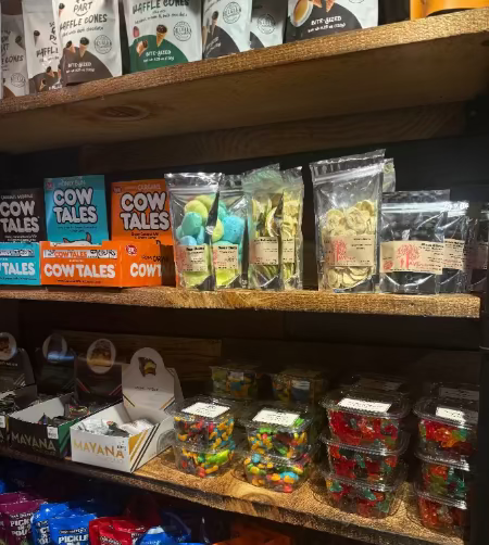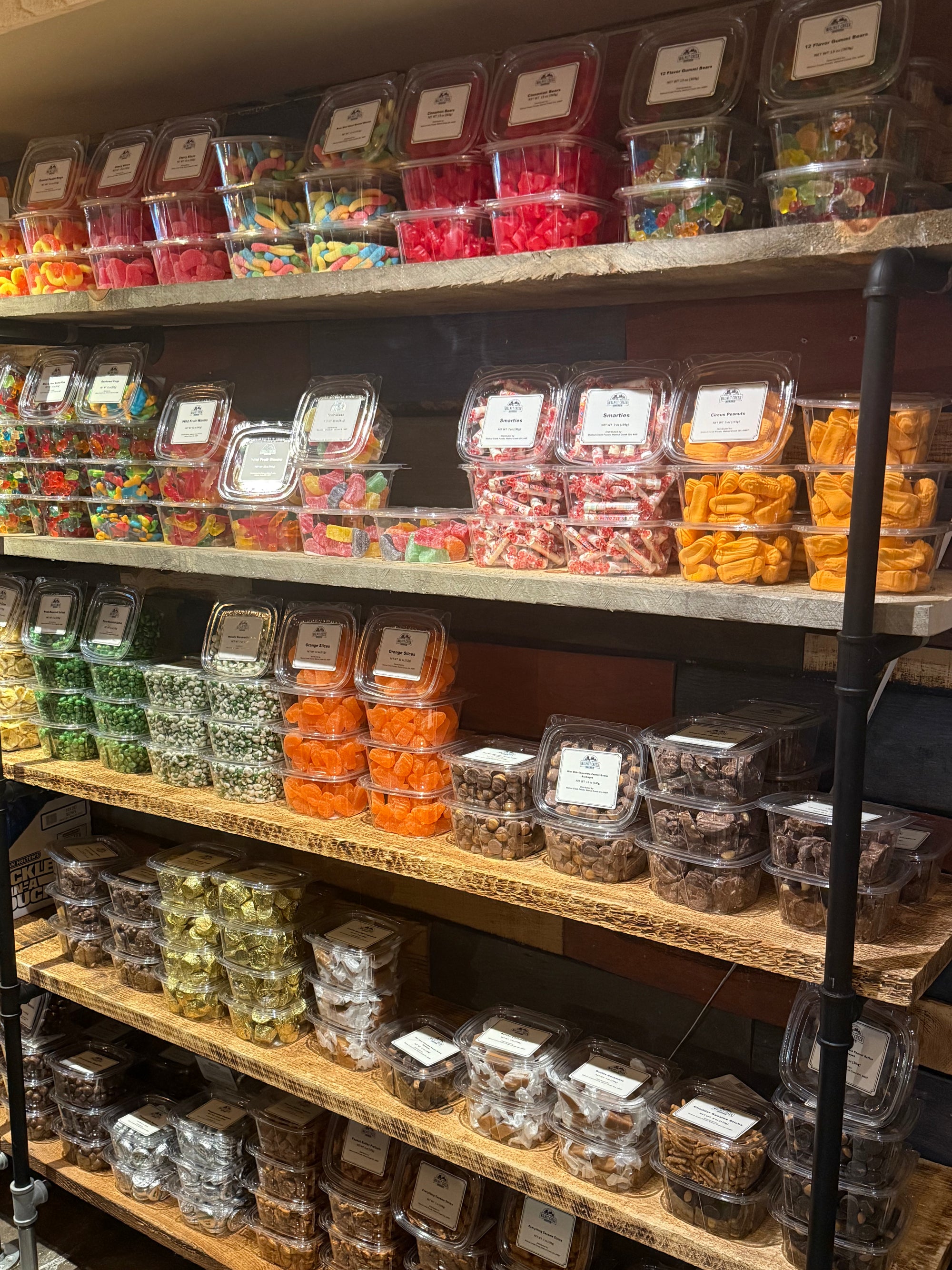 We have a large assortment of sweet treats from, Jellys-Jam, popcorn, salsa, homemade syrups, gummies and even chocolate cover potato chips! Check out of savory snacks on our website or come on in and sample!